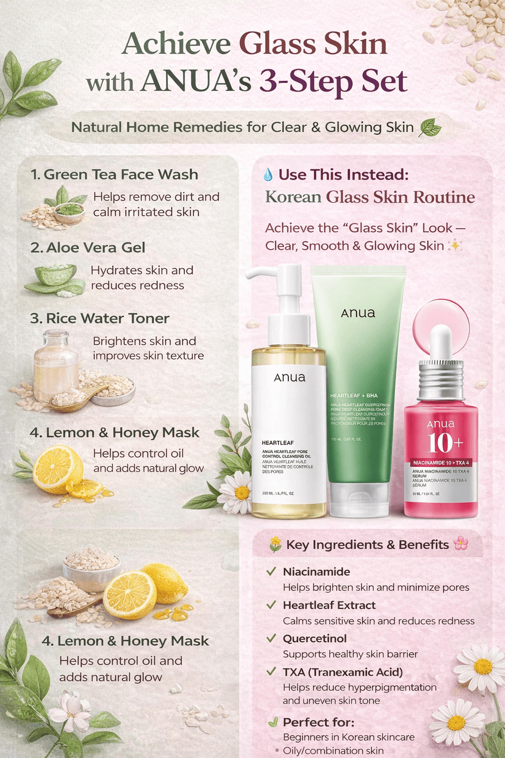Anua 3-Step Glass Skin Beginner Set, Oil Cleanser and Face Wash with Facial Serum, Double...